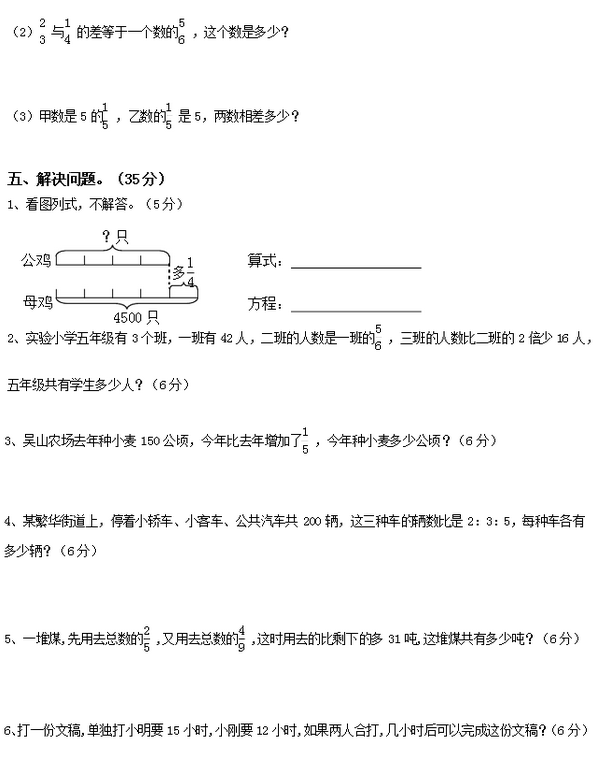 六年级数学上册期中试卷(2014年新人教版)(3)