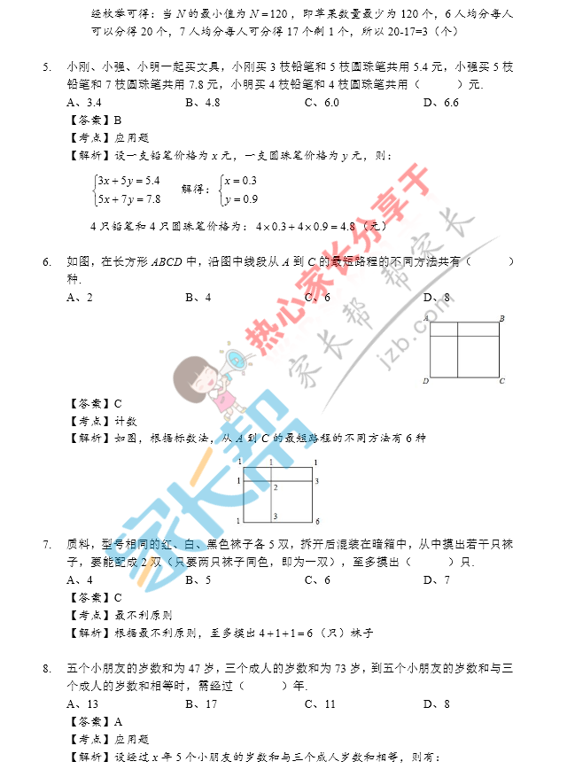 2017年武汉第15届创新杯六年级初赛答案详解(2)