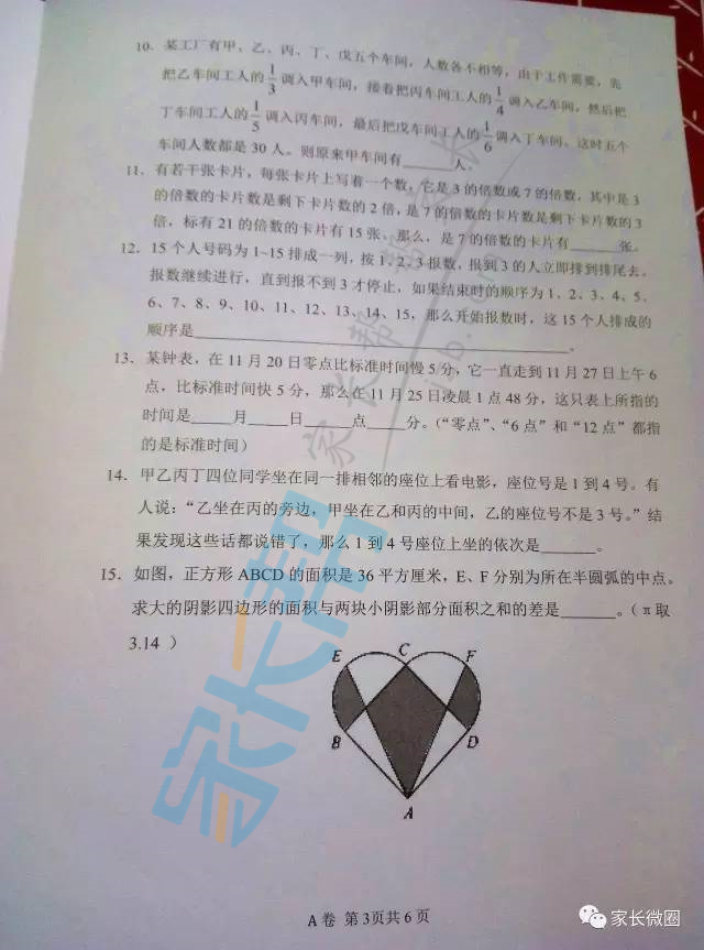 2017年武汉自励·未来杯六年级初赛真题(3)