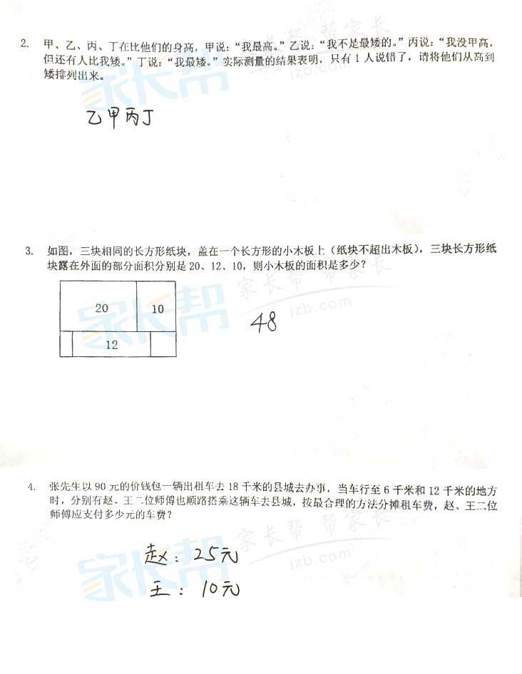 2017年武汉小升初新苗杯初赛五年级真题答案(3)