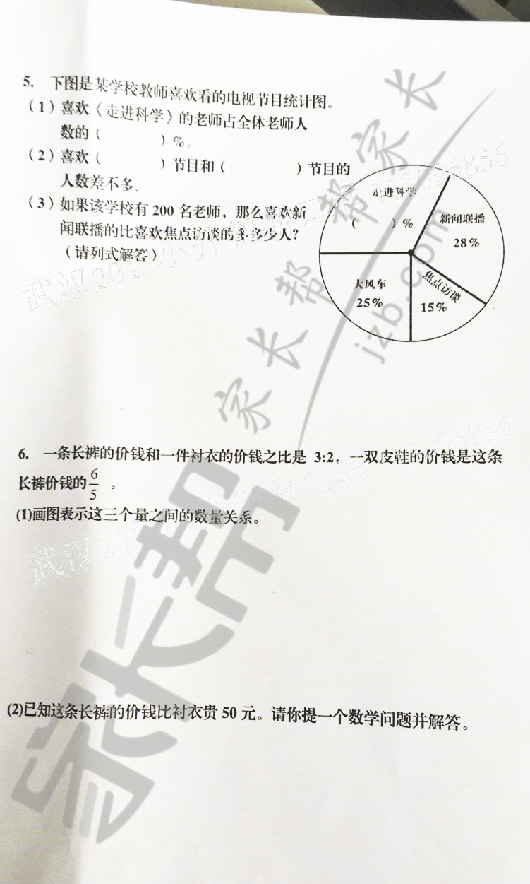 2017年武汉硚口区小升初元调数学试卷(6)