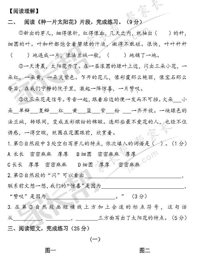 2017年武汉武昌区小升初元调语文试卷(鄂教版)(4)