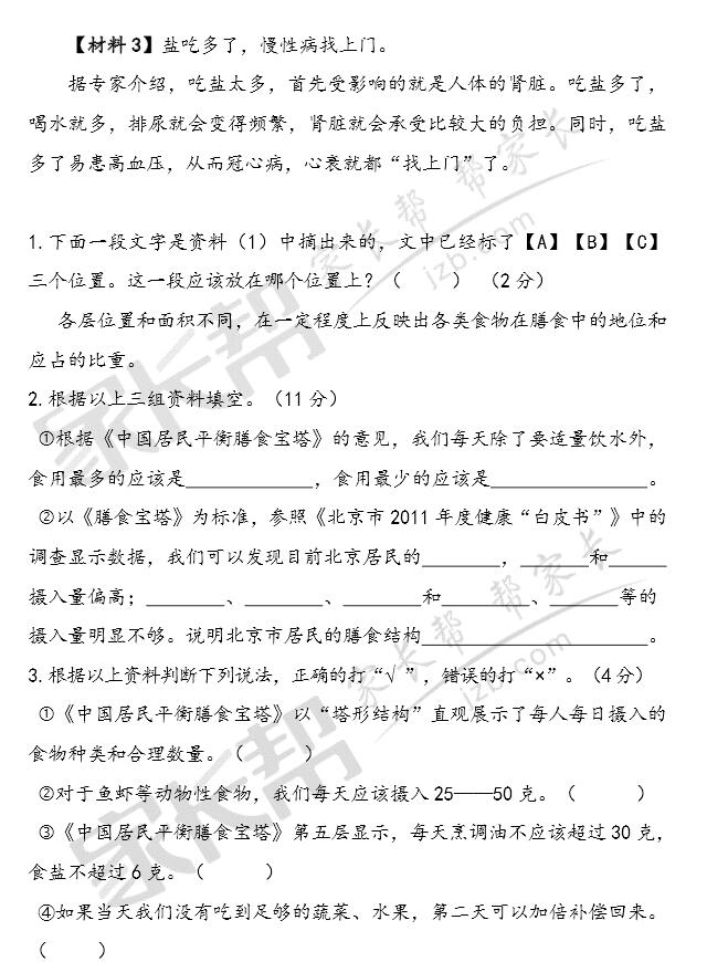 2017年武汉武昌区小升初元调语文试卷(鄂教版)(7)
