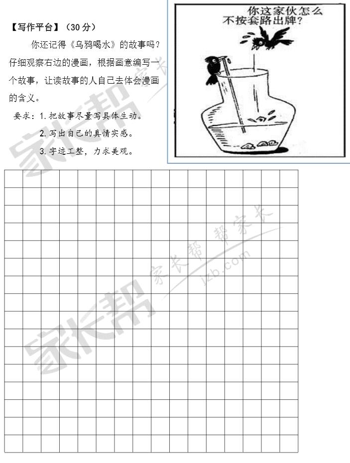 2017年武汉武昌区小升初元调语文试卷(鄂教版)(8)