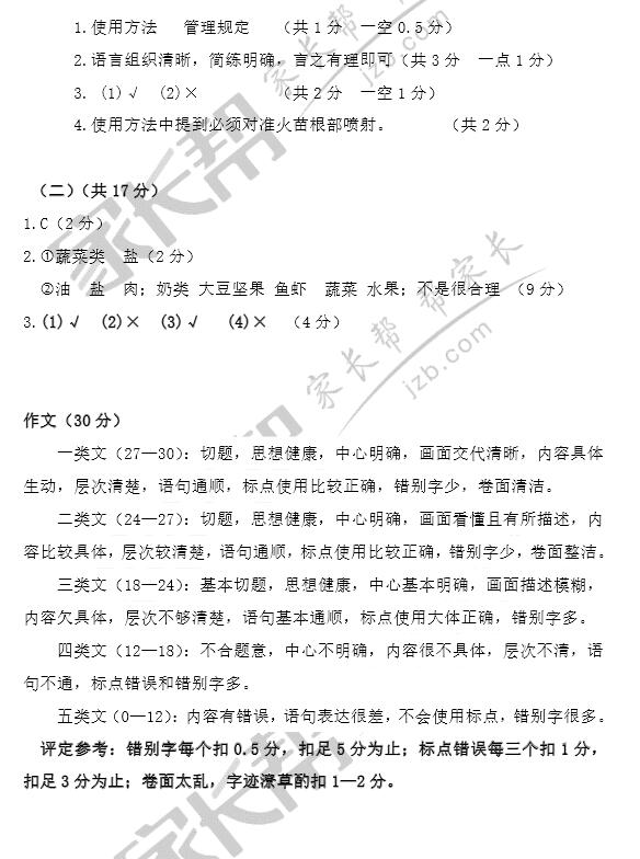 2017年武汉武昌区小升初元调语文试卷答案(鄂教版)(2)