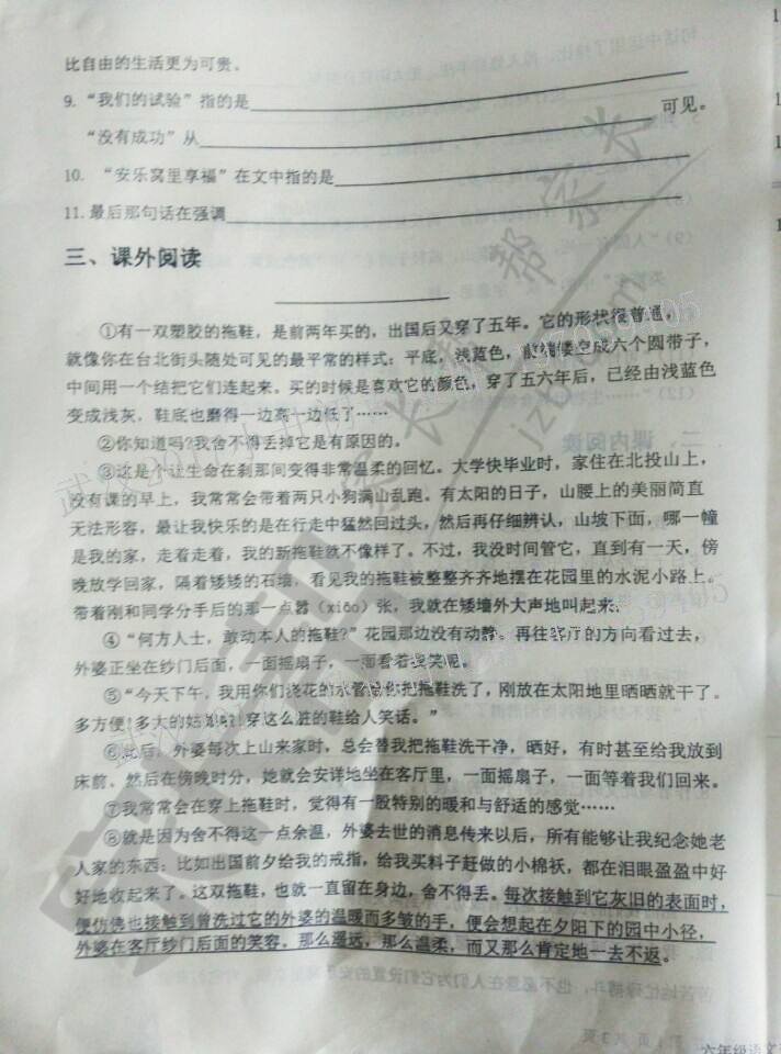 2017年武汉青山区小升初元调语文试卷及答案(3)