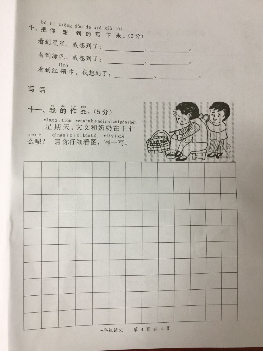 2016-2017学年上学期武汉东新区一年级语文期末试卷(4)