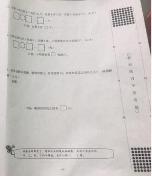 2016-2017学年上学期武汉江岸区一年级数学期末试卷(4)
