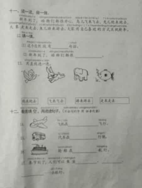 2016-2017学年上学期武汉青山区一年级语文期末试卷(4)