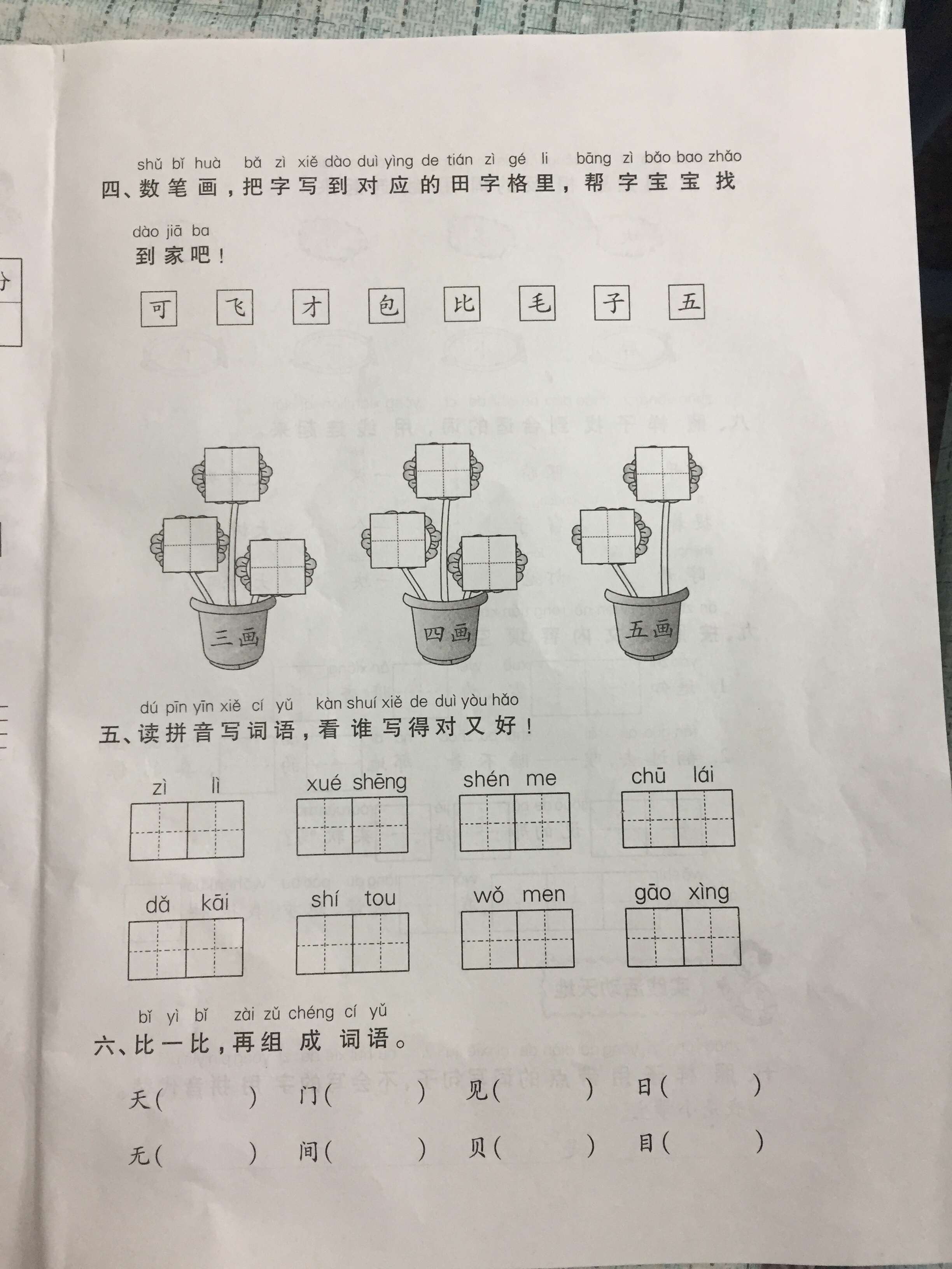 2016-2017学年上学期武汉江汉区一年级语文期末试卷(2)