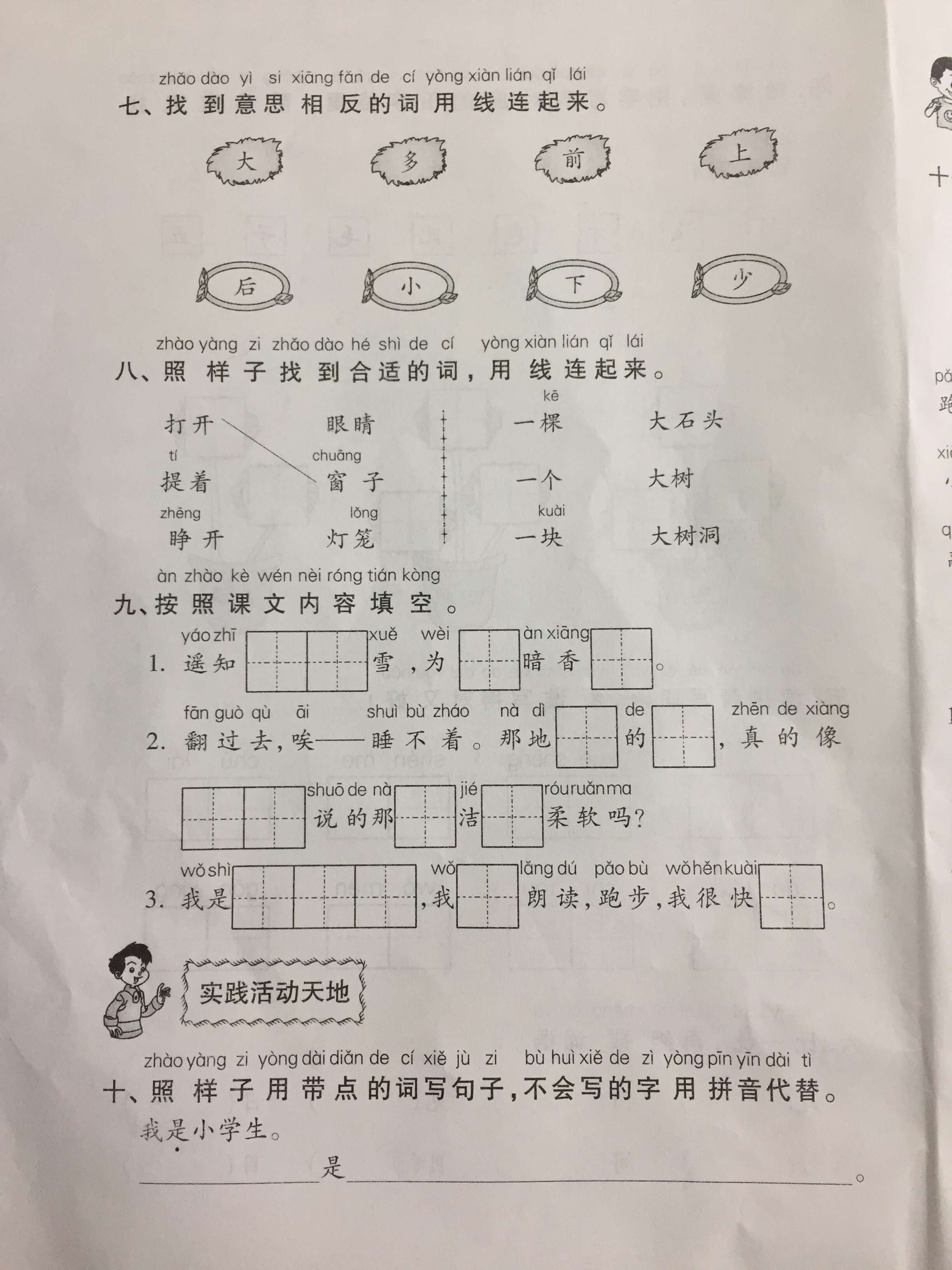 2016-2017学年上学期武汉江汉区一年级语文期末试卷(3)