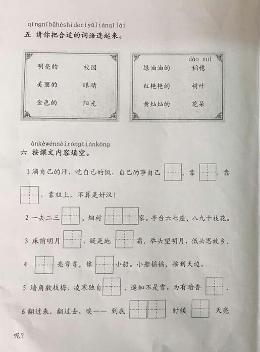 2016-2017学年上学期武汉武昌区一年级语文期末试卷(3)