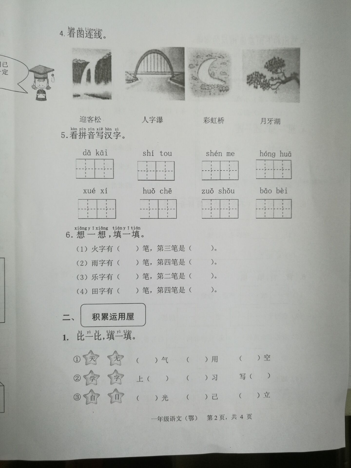 2016-2017学年上学期武汉洪山区一年级语文期末试卷(3)