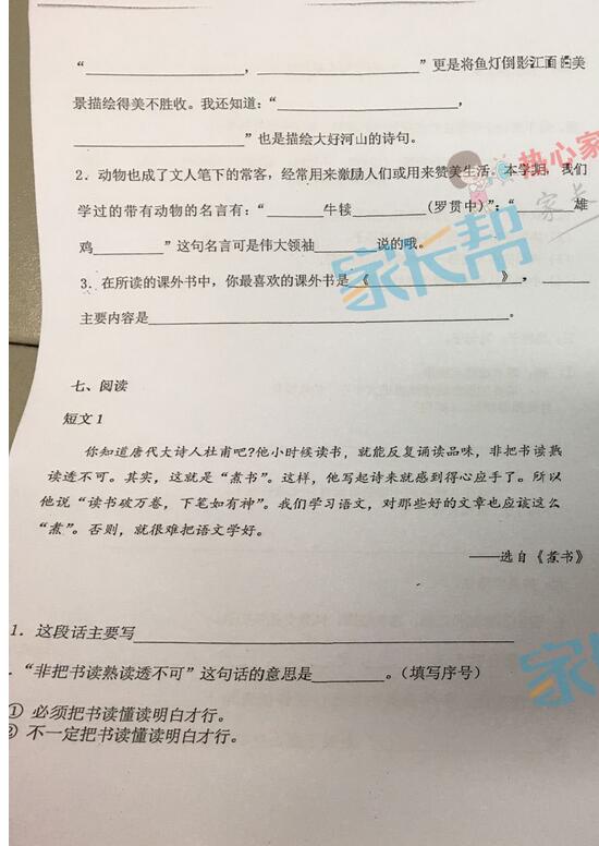 2016-2017学年上学期武汉武昌区三年级语文期末试卷(3)