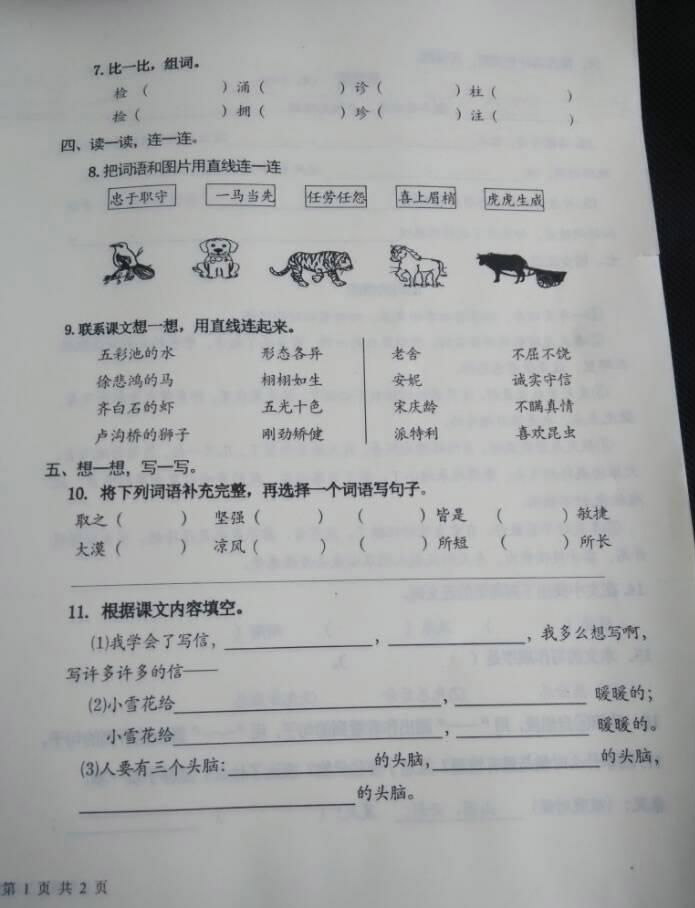 2016-2017学年上学期武汉青山区三年级语文期末试卷(2)