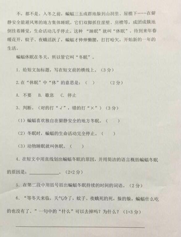 2016-2017学年上学期武汉硚口区三年级语文期末试卷(4)