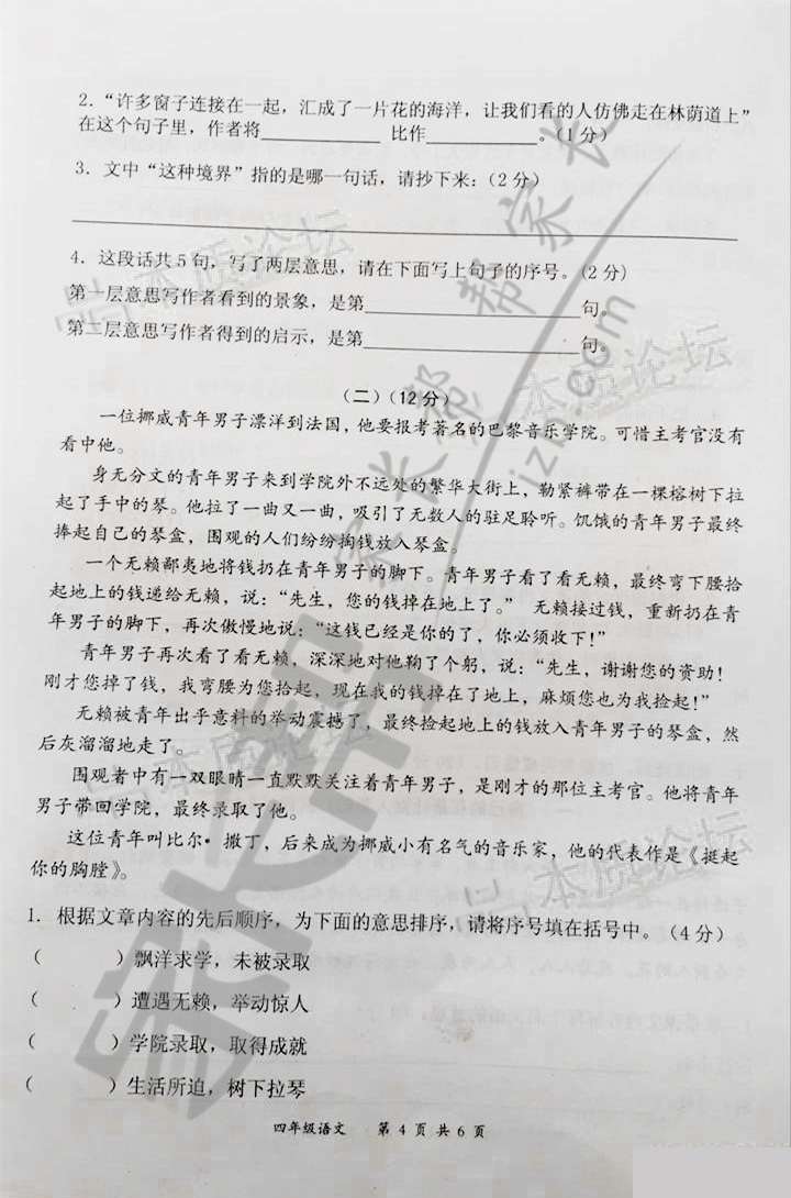 2016-2017学年上学期武汉东新区四年级语文期末试卷(4)