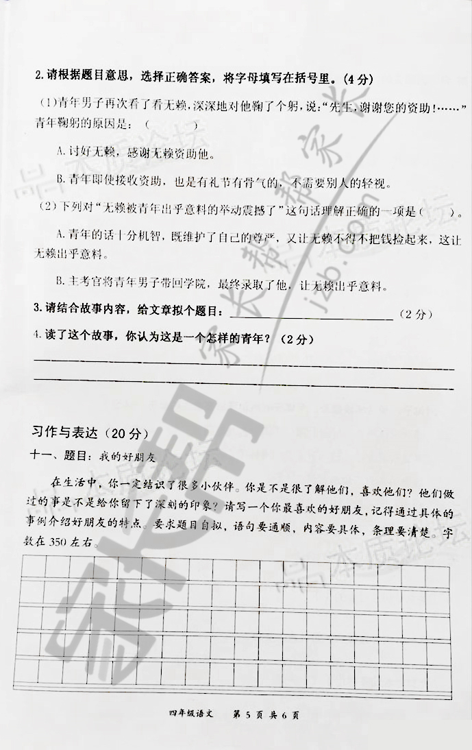 2016-2017学年上学期武汉东新区四年级语文期末试卷(5)