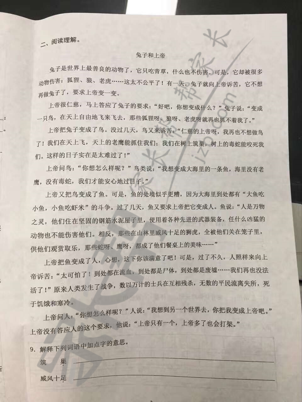 2016-2017学年上学期武汉汉阳区四年级语文期末试卷(3)