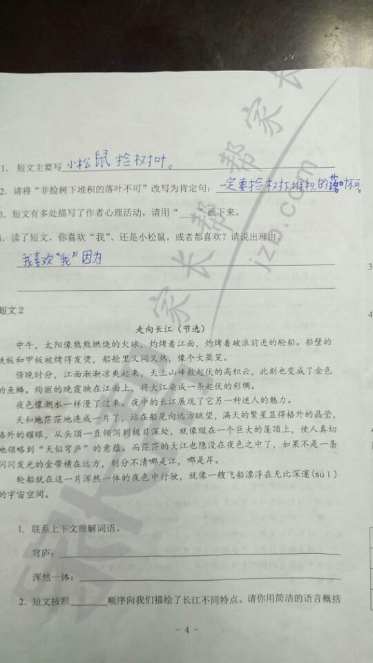 2016-2017学年上学期武汉武昌区四年级语文期末试卷(4)