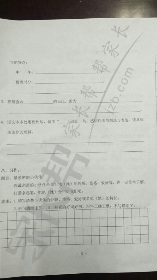 2016-2017学年上学期武汉武昌区四年级语文期末试卷(5)