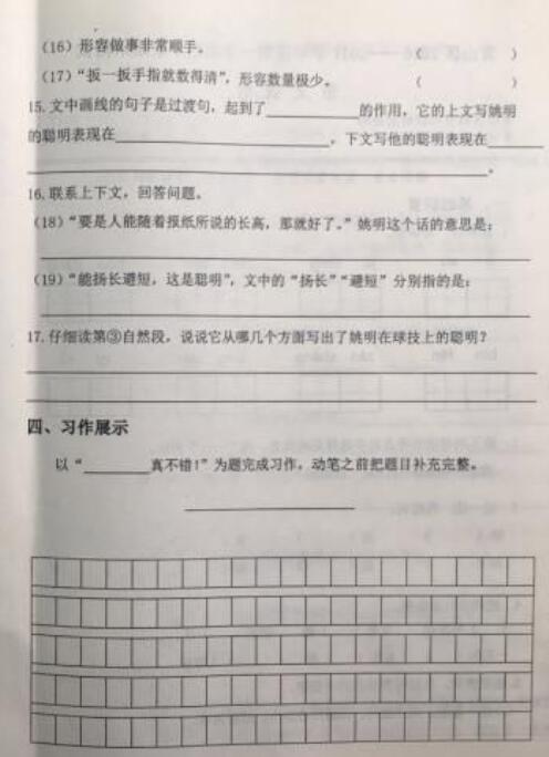 2016-2017学年上学期武汉青山区四年级语文期末试卷(4)