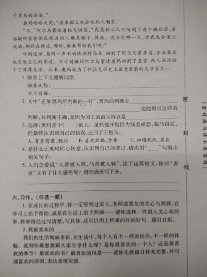2016-2017学年上学期武汉江汉区四年级语文期末试卷(3)