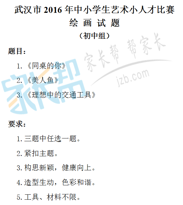 2016武汉中小学生艺术小人才比赛绘画试题(初中组)