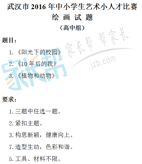 2016武汉中小学生艺术小人才比赛绘画试题(高中组)