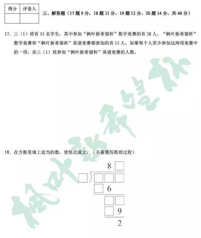 2017年武汉新希望杯决赛三年级真题及答案(3)