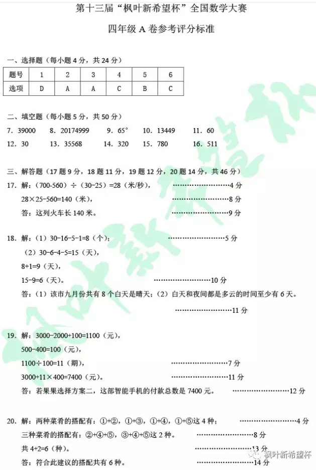 2017年武汉新希望杯决赛四年级真题及答案(5)