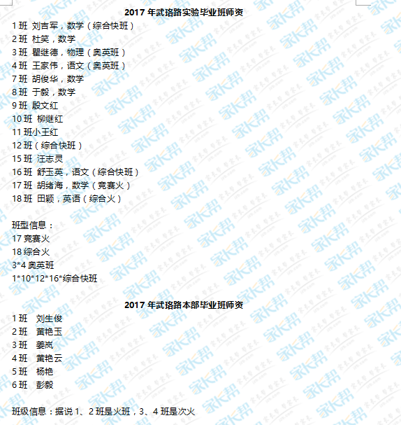2017年武汉武珞路初三毕业班师资信息汇总