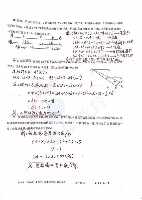 2017年武汉惟乐杯数学五年级A2卷真题及答案(4)