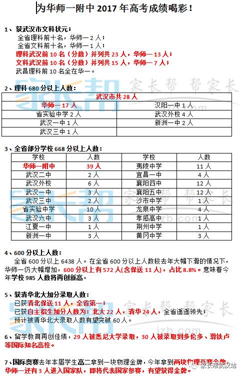 2017年武汉华师一附中高考喜报