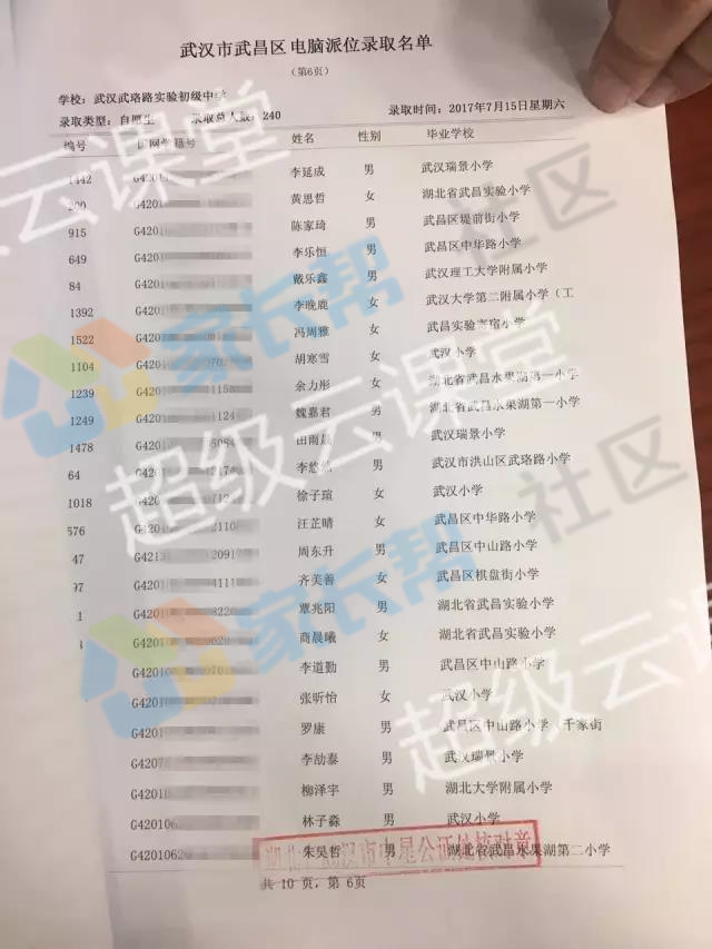 2017年武汉武珞路中学小升初摇号录取名单(6)