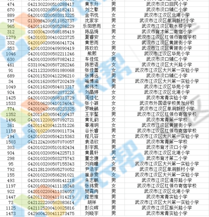 2017年武汉一初慧泉中学小升初摇号录取名单(5)