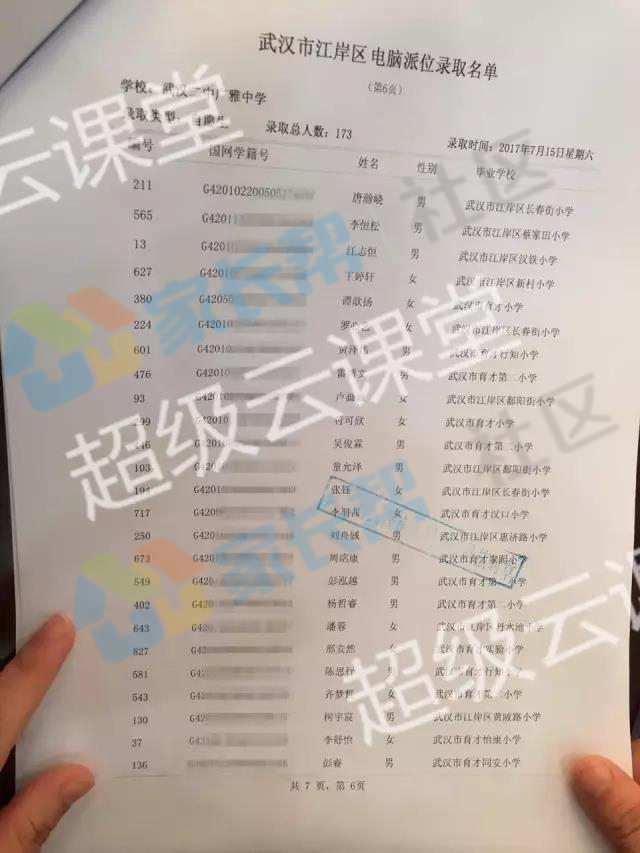 2017年武汉二中广雅小升初摇号录取名单(6)