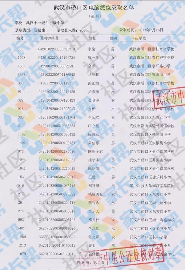 2017年武汉十一崇仁小升初摇号录取名单(2)
