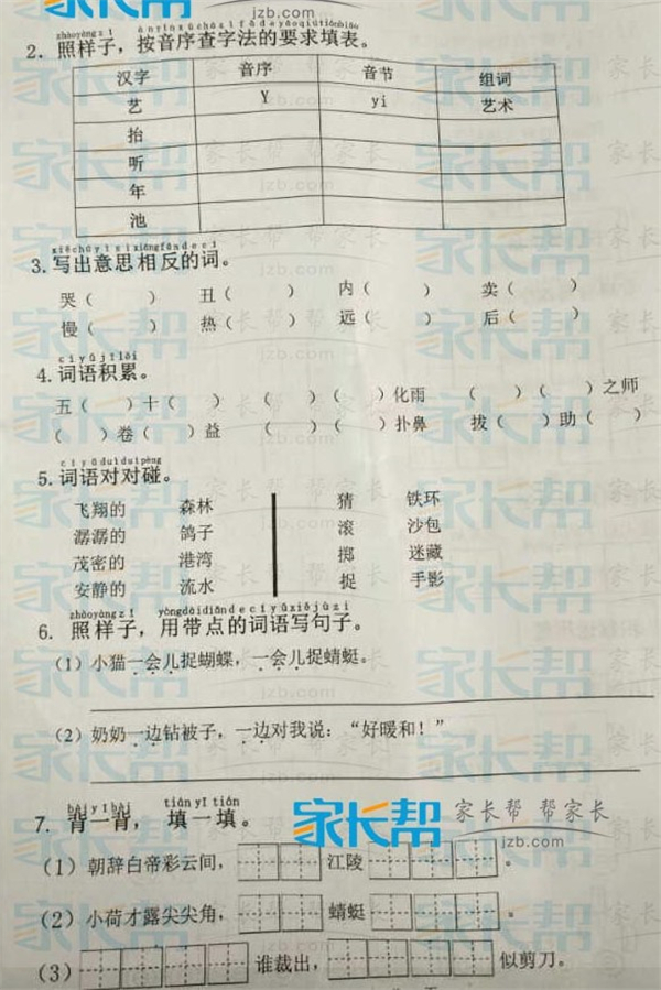 2016-2017武汉洪山区一年级下学期语文期末试卷(3)