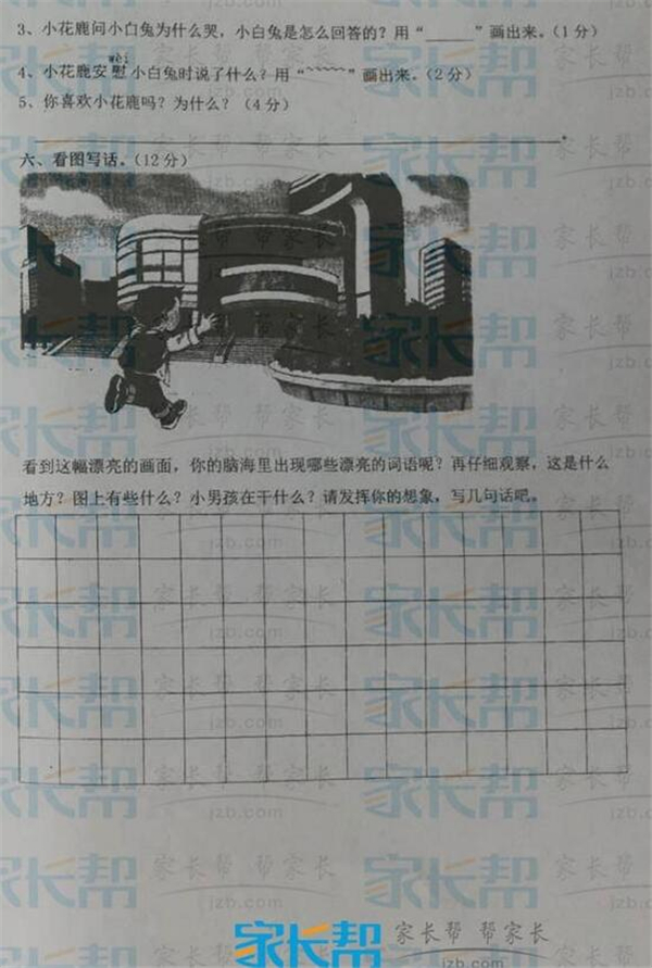 2016-2017武汉硚口区一年级下学期语文期末试卷(4)