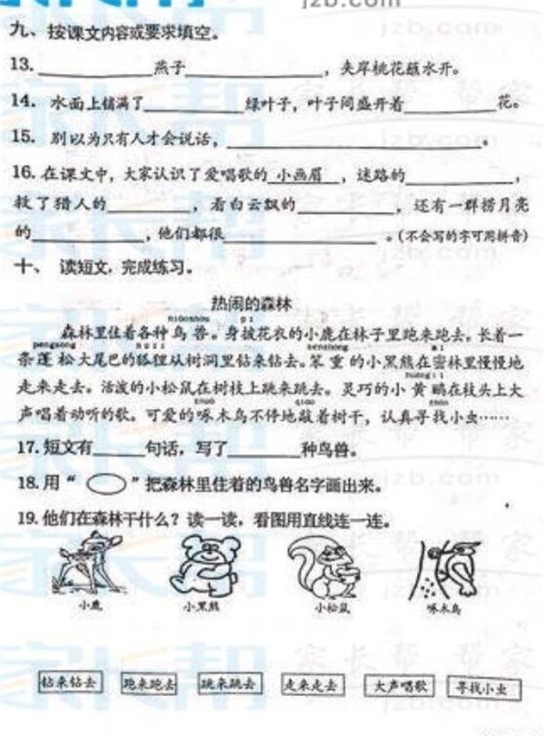 2016-2017武汉青山区一年级下学期语文期末试卷(3)