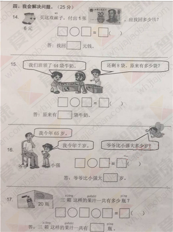 2016-2017武汉青山区一年级下学期数学期末试卷(3)