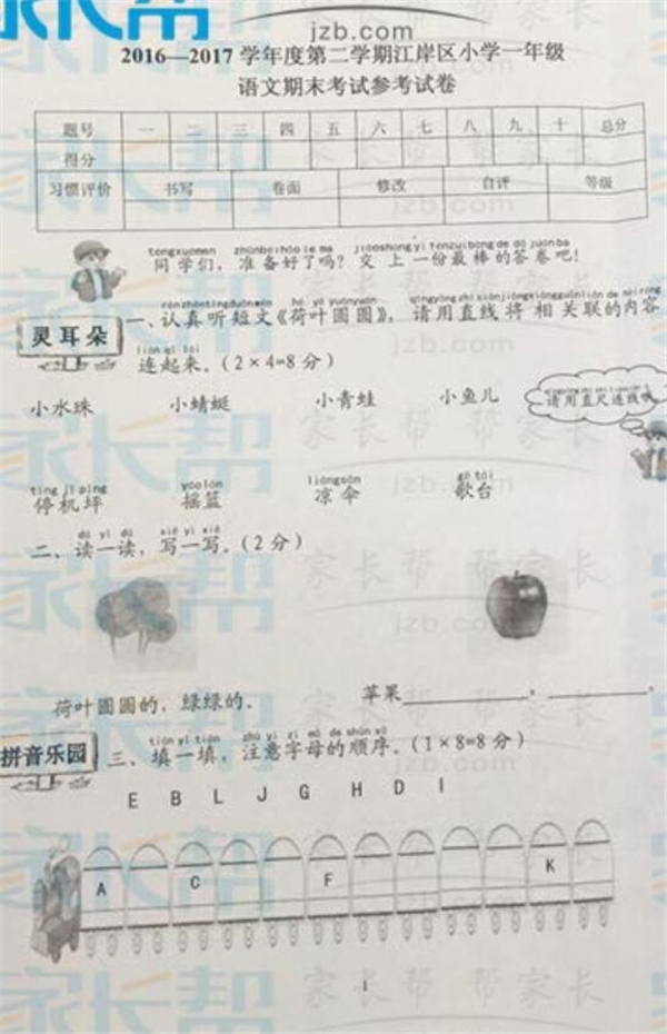 2016-2017武汉江岸区一年级下学期语文期末试卷