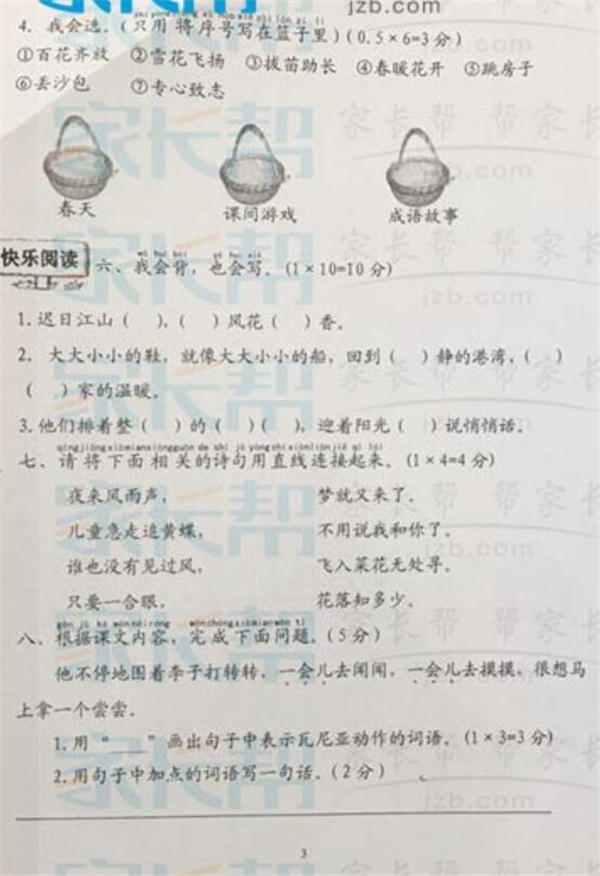 2016-2017武汉江岸区一年级下学期语文期末试卷(3)