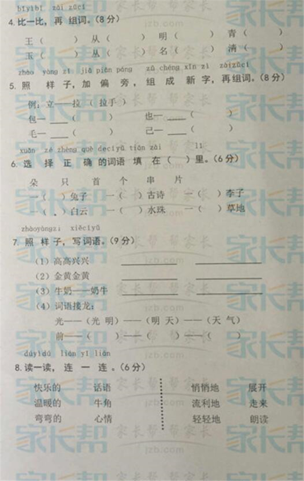 2016-2017武汉东湖高新区一年级下学期语文期末试卷(2)
