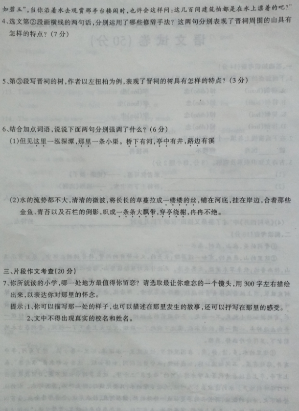 2017学年武汉江岸区七年级语文综合素质试卷(2)