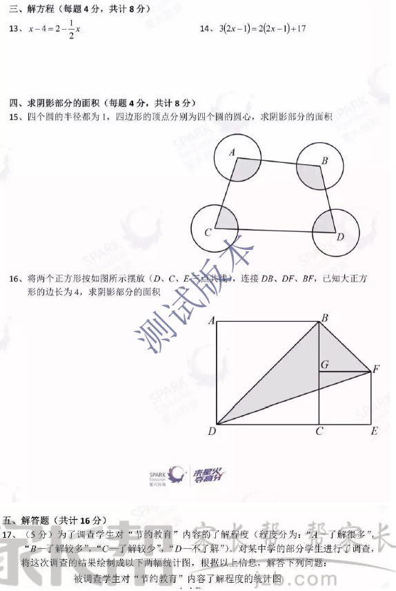 2017武汉江岸区初一新生统考数学试卷及答案(2)