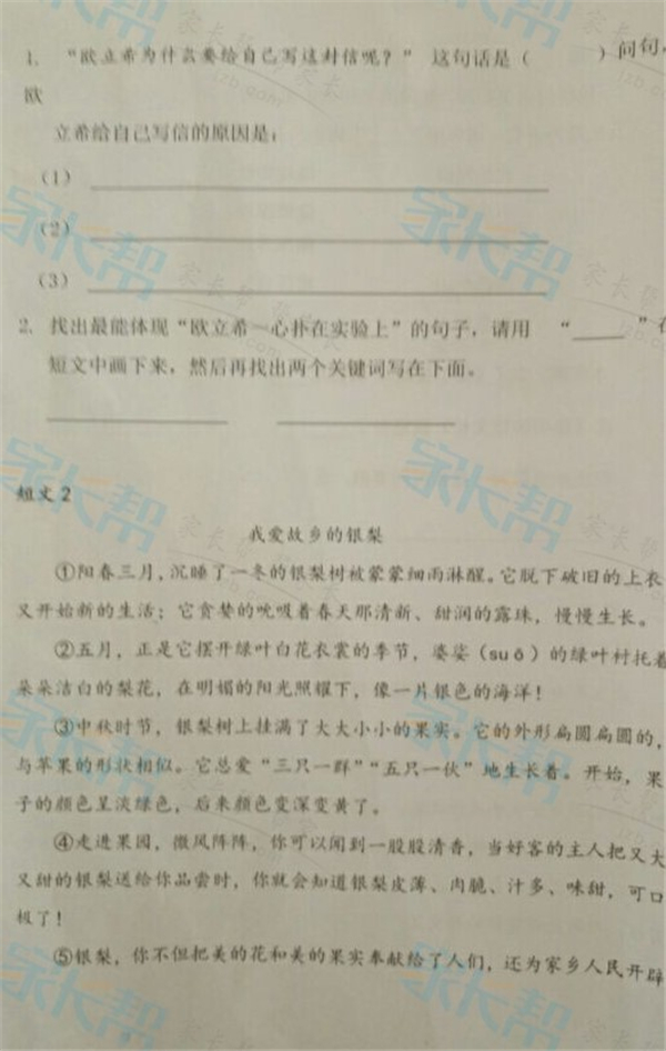 2016-2017武汉武昌区三年级下学期语文期末试卷(3)