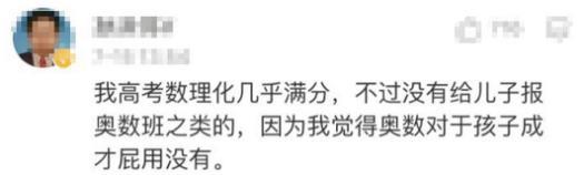 曾是清华大学数学系的教授的现任清华附中王校长,日前对外表示:在女儿上了几次奥数班后,就被他喊停,原因是“奥数老师问我的题目我都做不出来。”