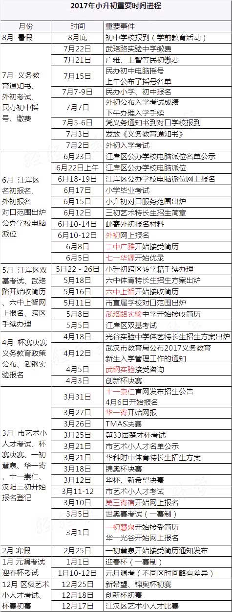 为了帮助2018小升初家长更好地规划一年的学习,将武汉小升初重要事件及日程进行了汇总。